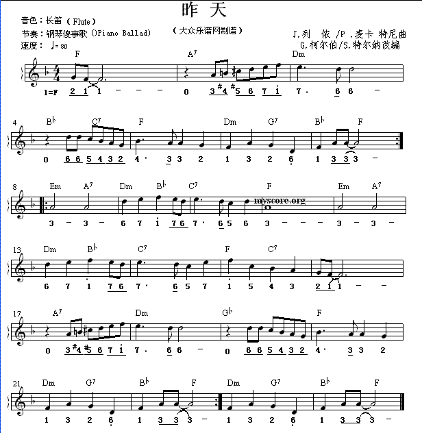 > 世界名曲双谱式 昨日