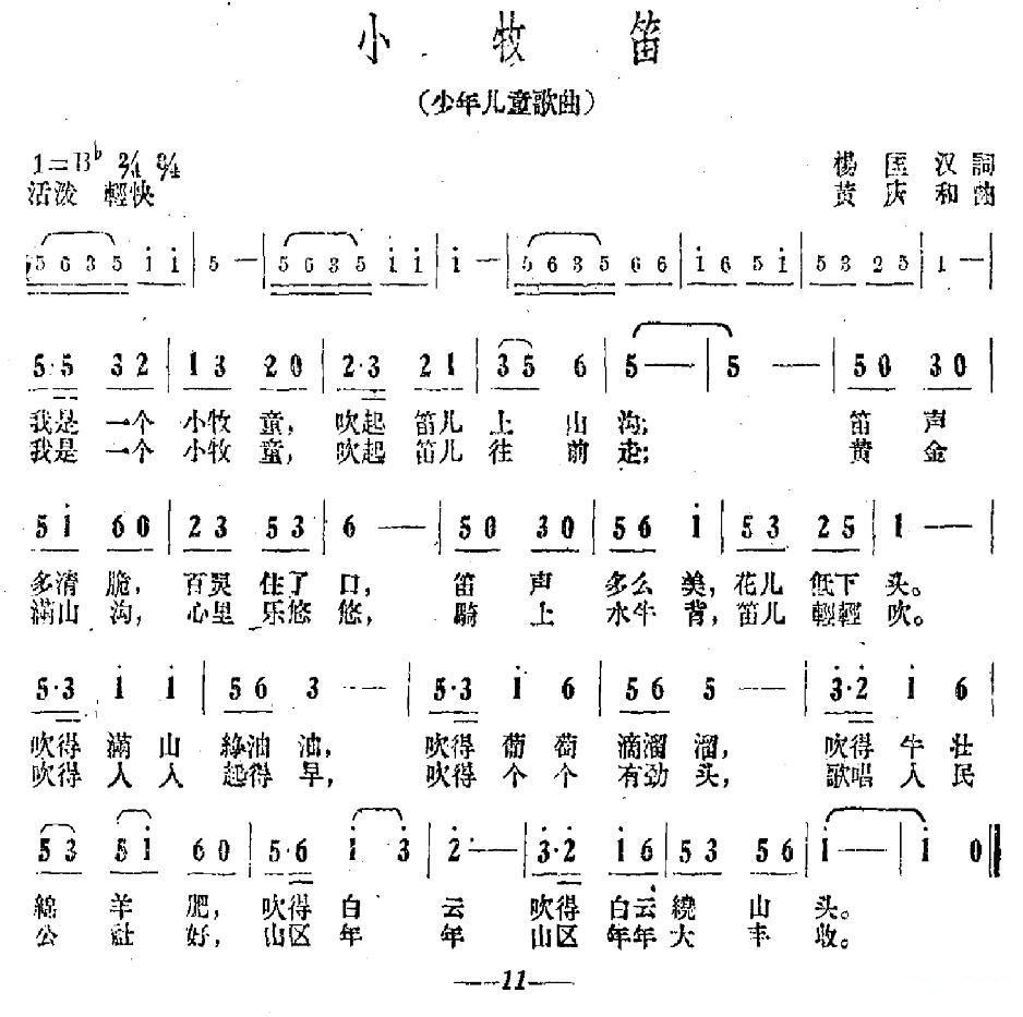 - [笛子谱,歌谱] 小牧笛 少儿歌曲