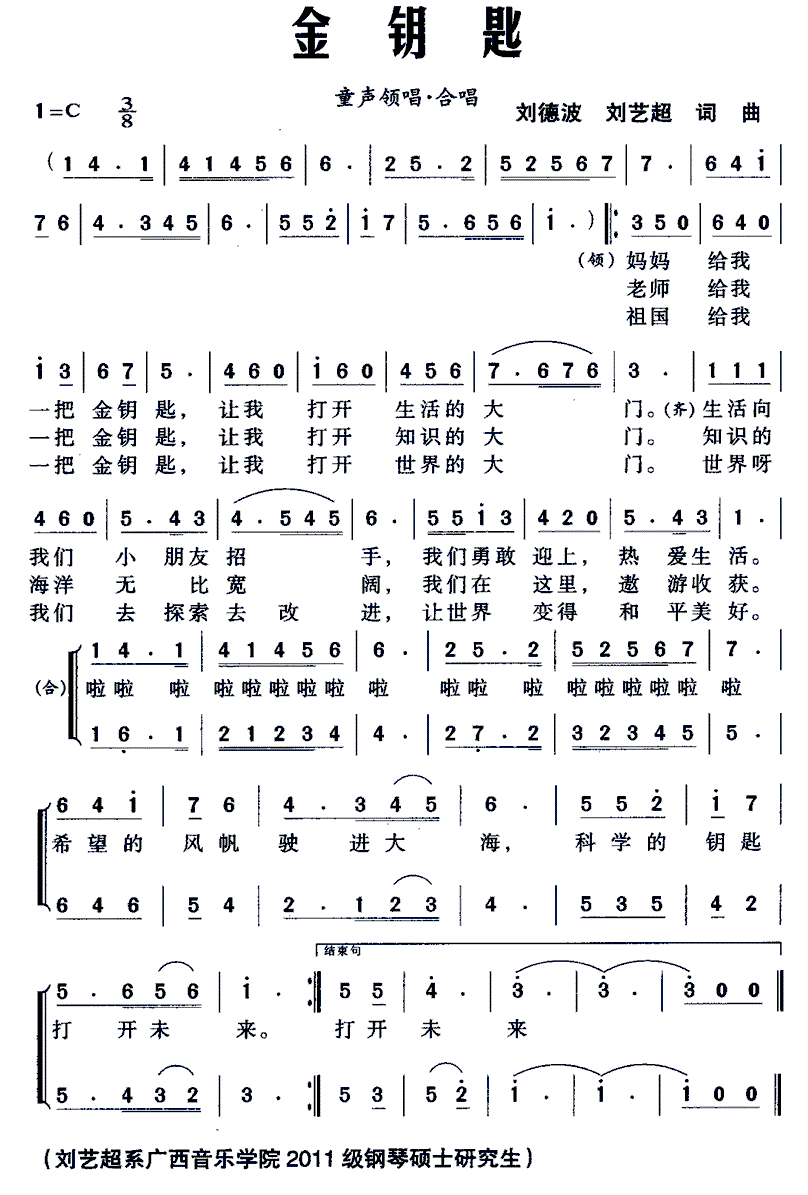 - [歌谱] 童年的金钥匙 少儿歌曲 合唱