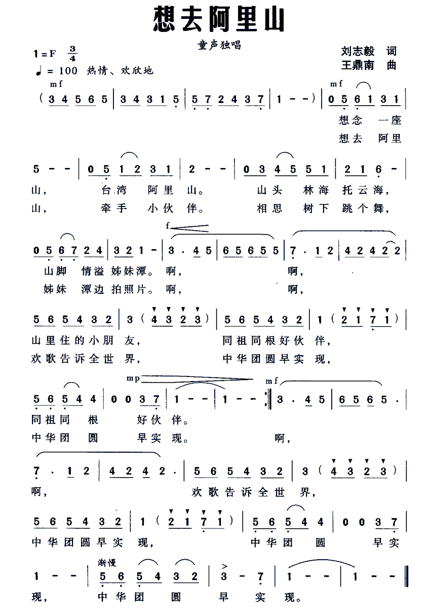 - [歌谱] 想去阿里山