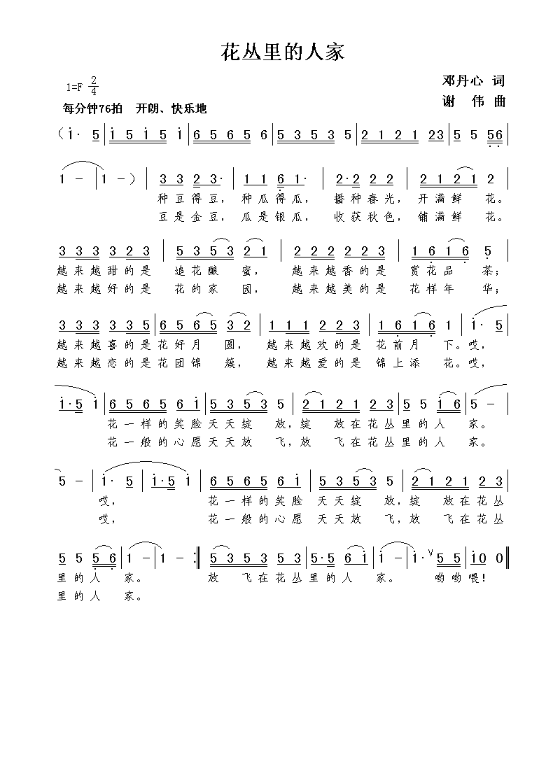- [歌谱] 作词 邓丹心
