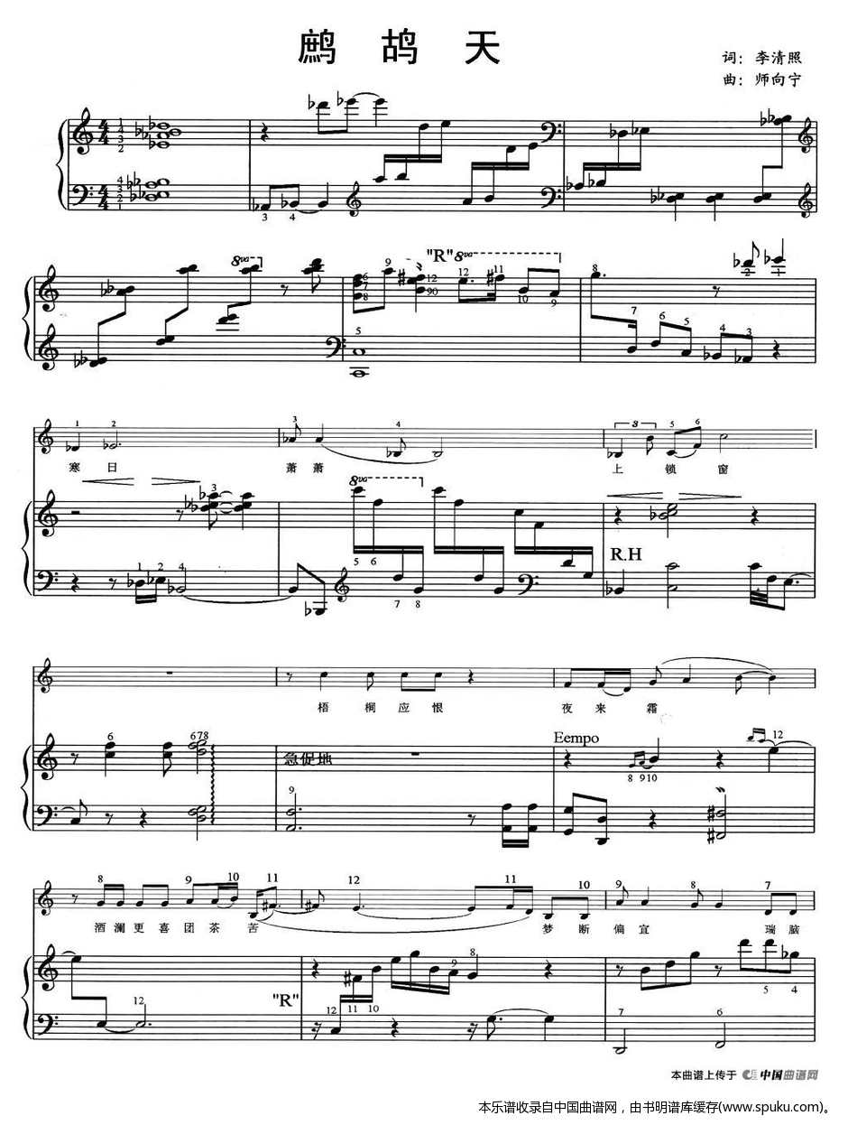 > 鹧鸪天 女高音 钢琴