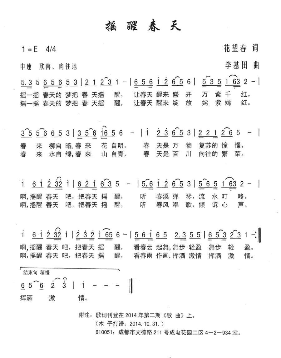 - [歌谱] 春天醒了