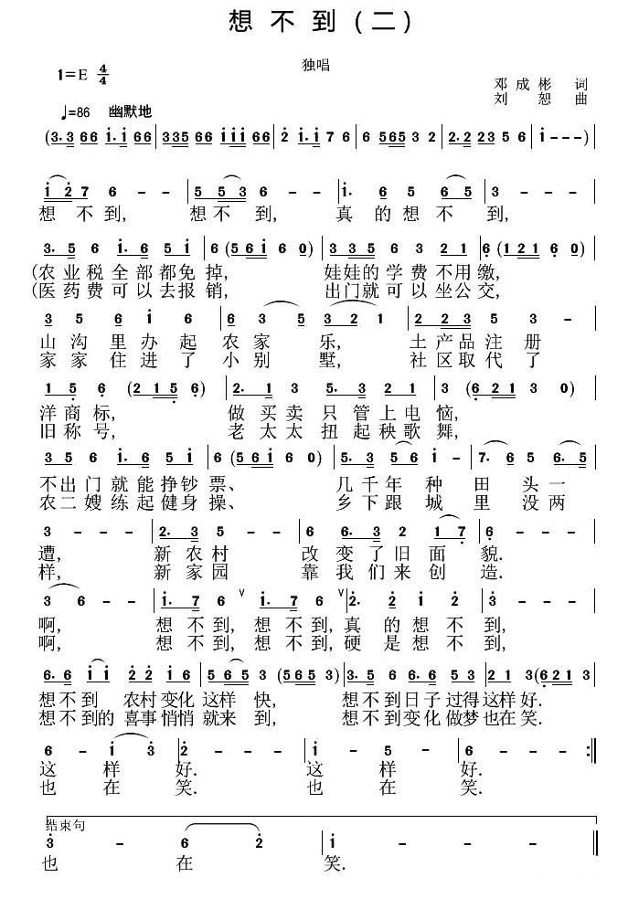 - [歌谱] 想不到