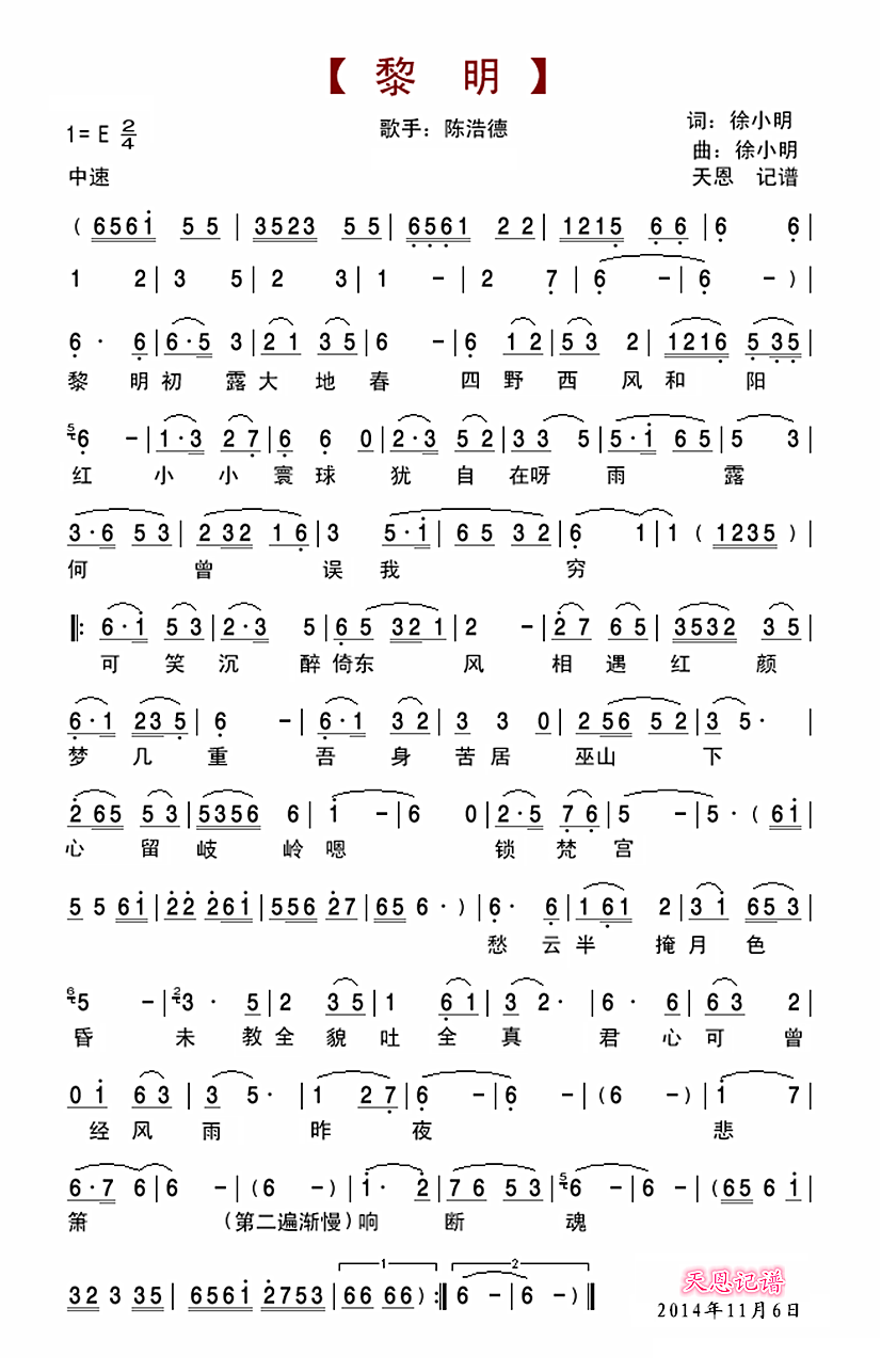 - [歌谱] 黎明