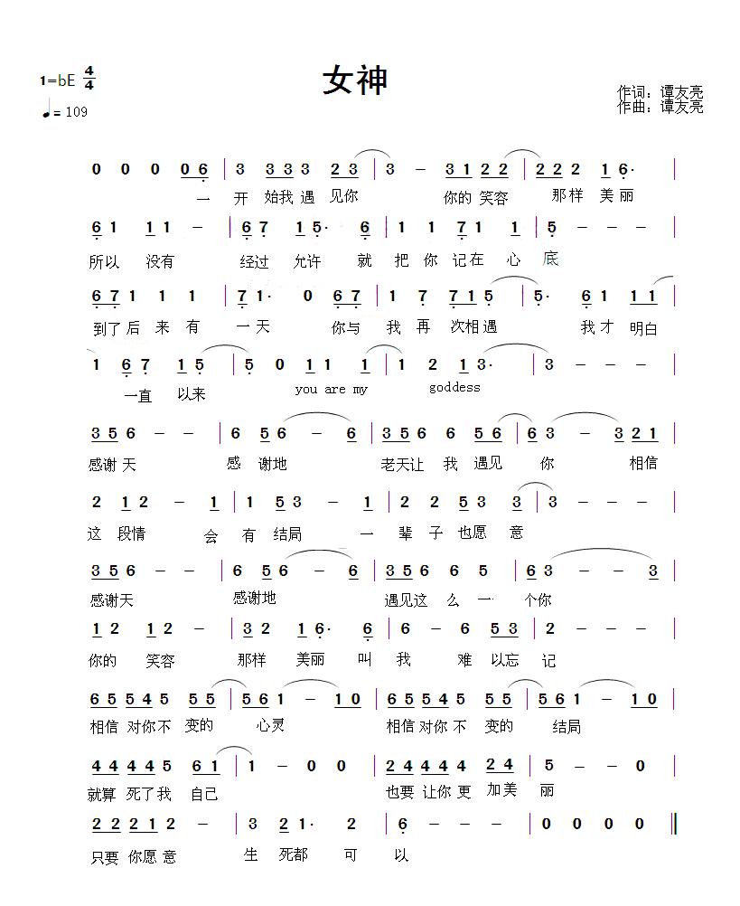 - [歌谱] 女神
