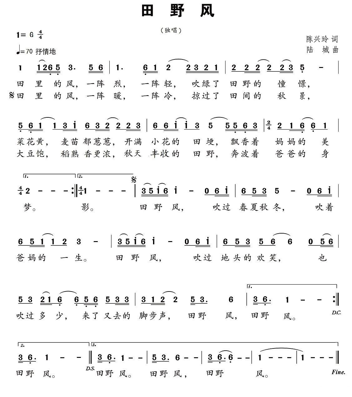 - [歌谱] 江淮田野风 安徽省第五届农民运动会会歌
