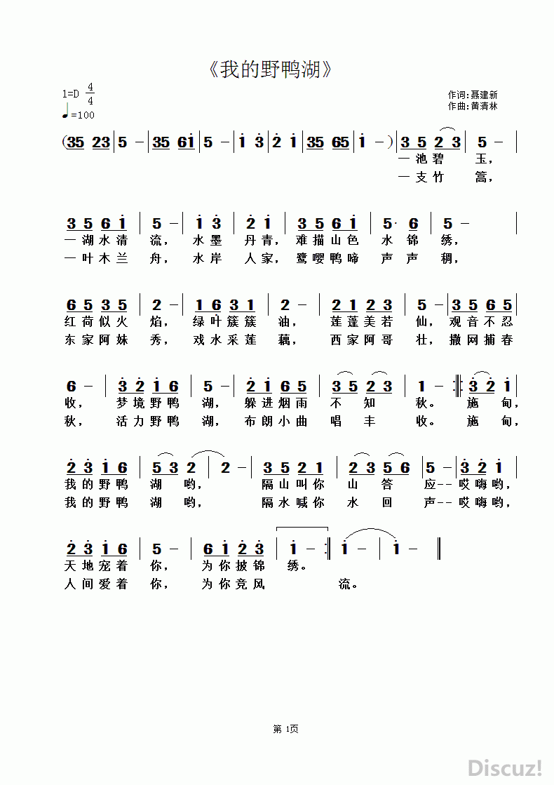 > 我的野鸭湖 黄清林曲