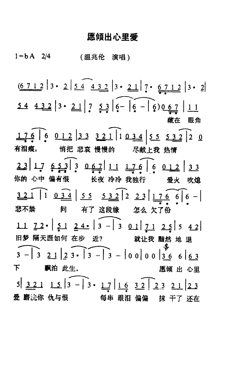 - [歌谱] 爱在心里头