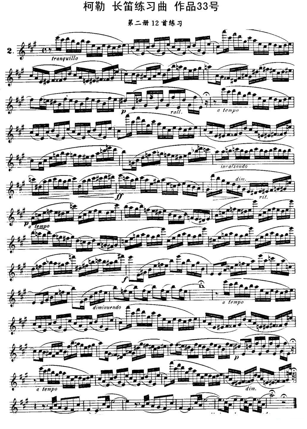 - [笛子谱,长笛谱] 柯勒长笛练习曲作品33号 第一册 12