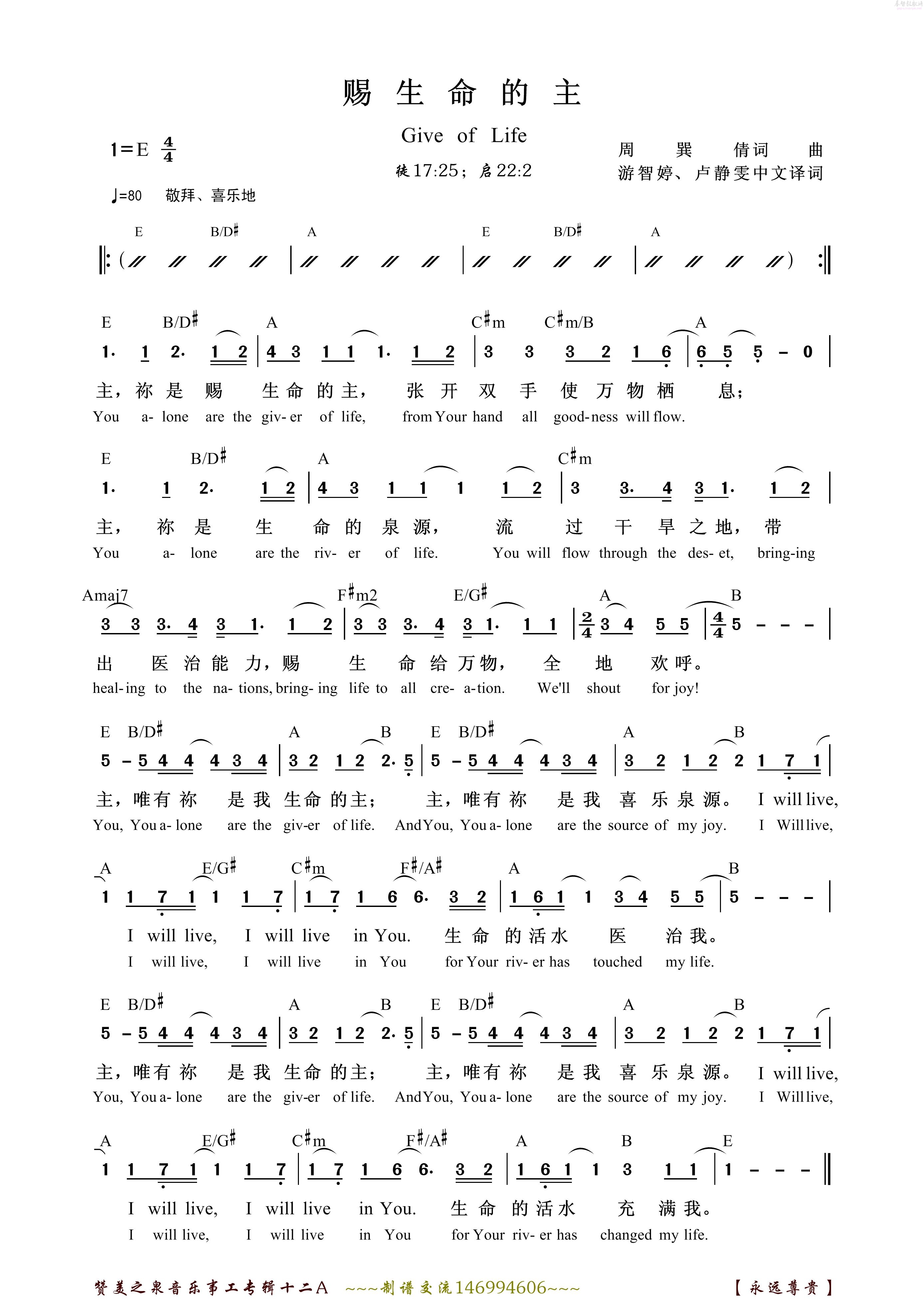 > 赐生命的主