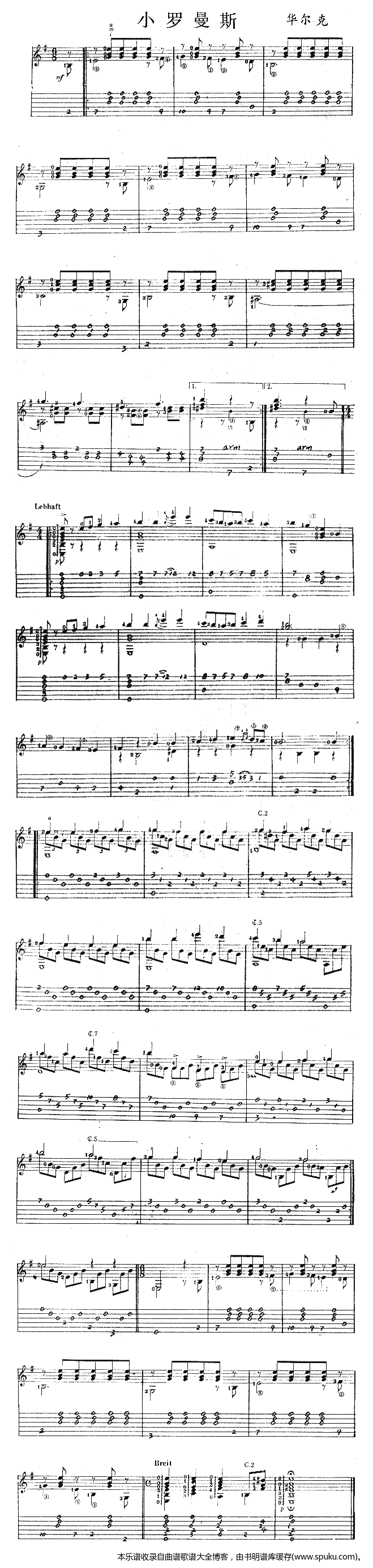 - [钢琴谱,歌谱,吉他谱] 小罗曼斯 吉他独奏曲