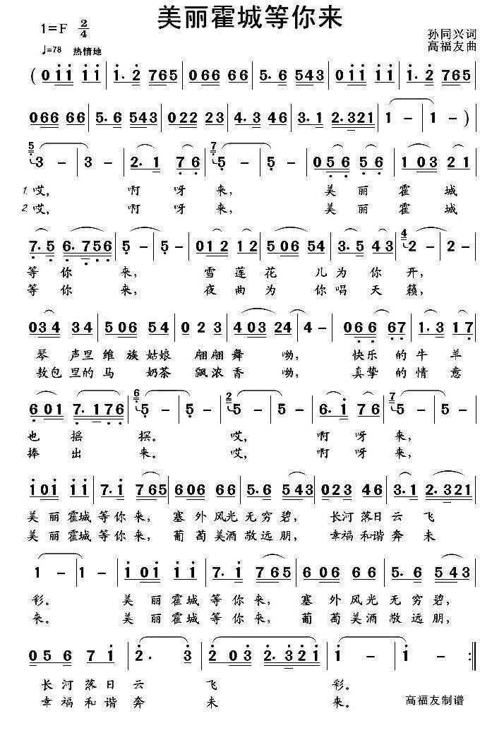- [歌谱] 神奇的霍城