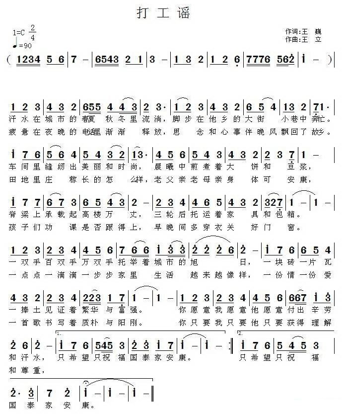 - [歌谱] 打工谣 王培林版