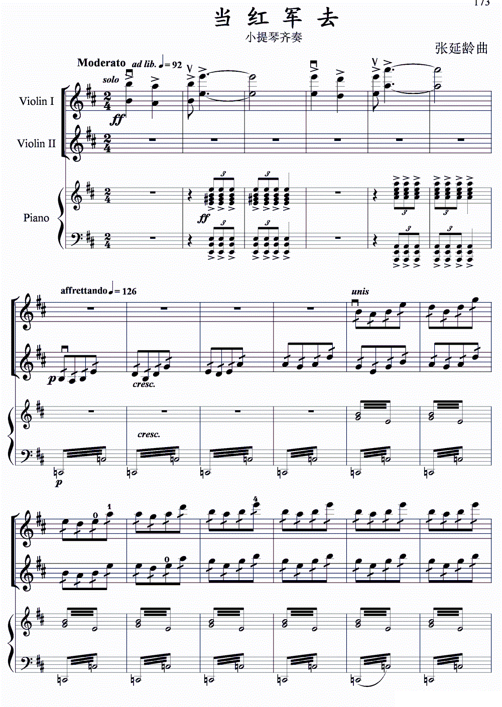 - [钢琴谱,小提琴谱] 红旗飘舞 小提琴齐奏 钢琴伴奏