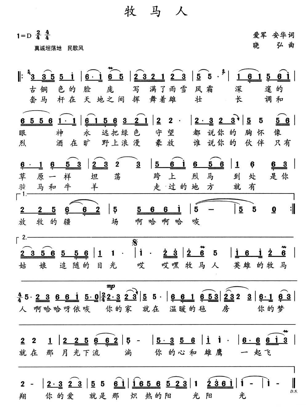 - [歌谱] 牧马人