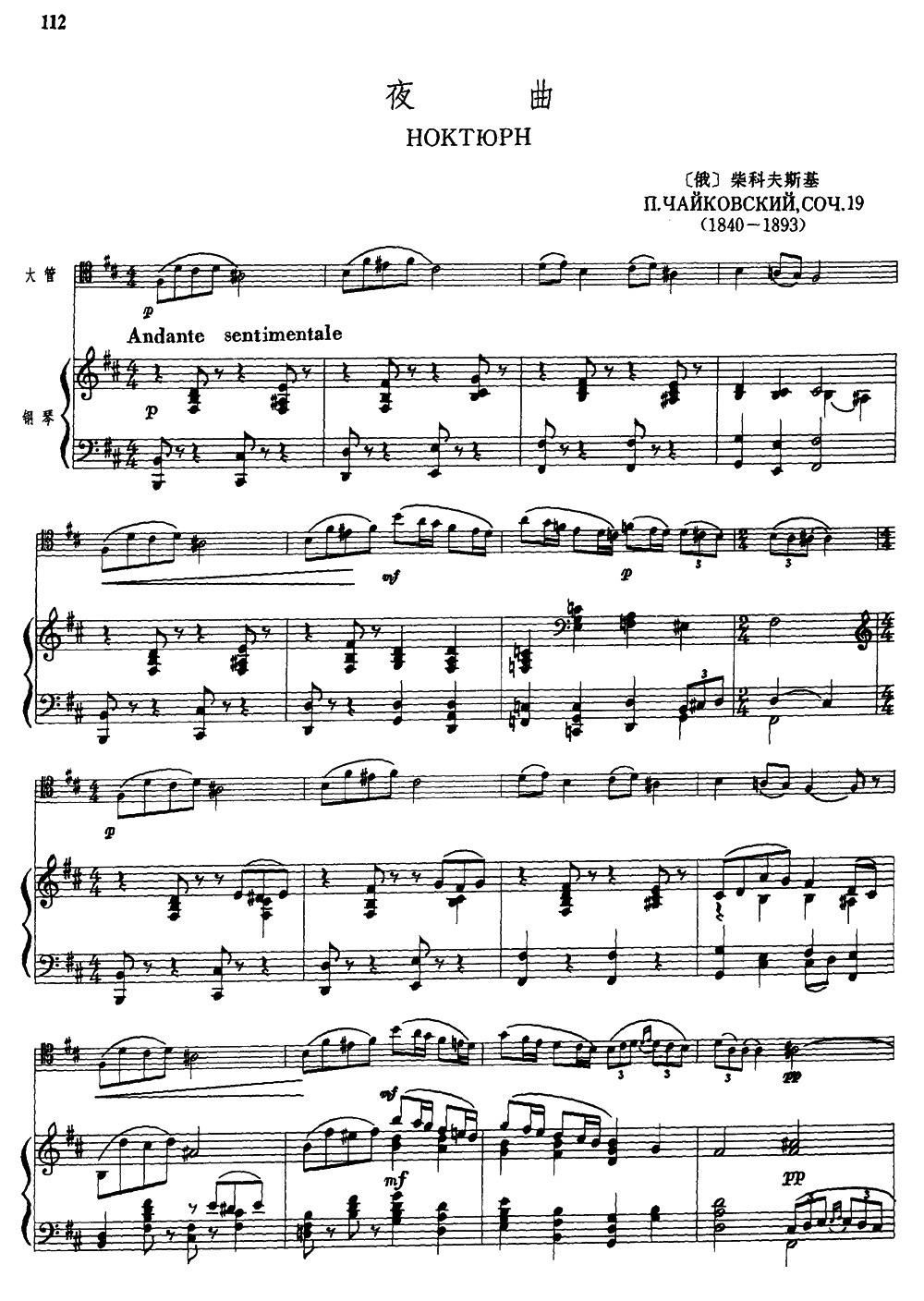 夜曲 大管 钢琴伴奏