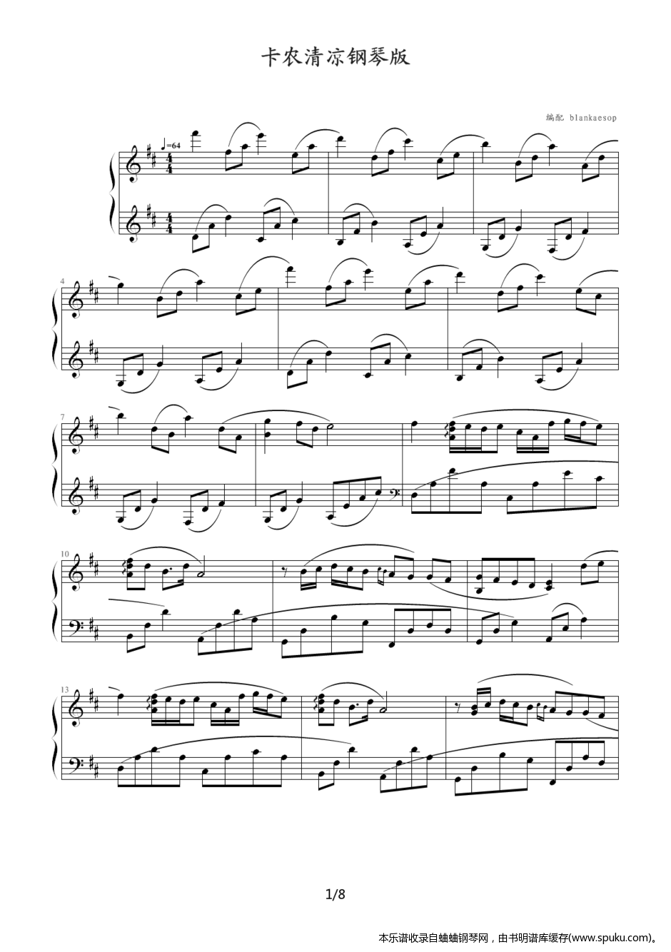 网上基本找不到的卡农谱版本―― 卡农钢琴清凉版