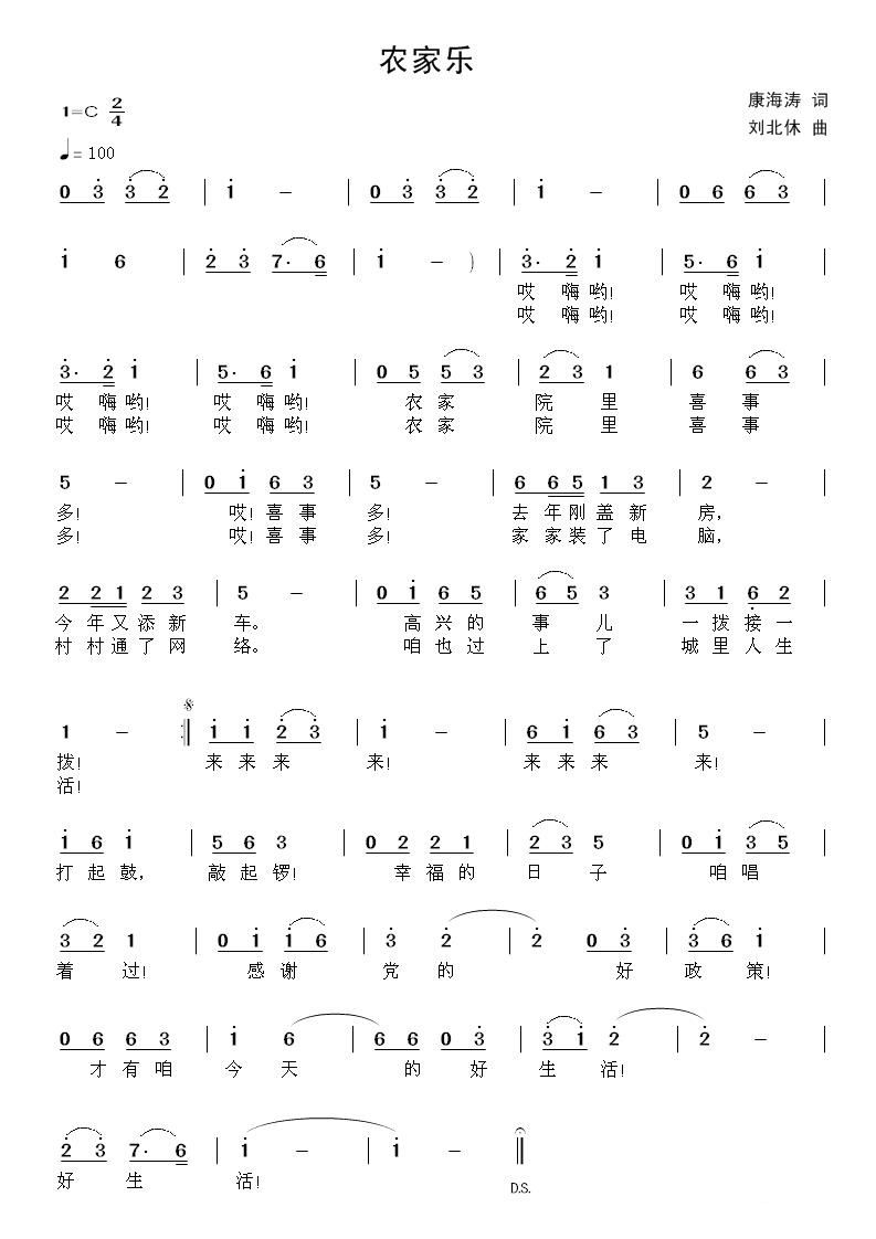 - [歌谱] 农家乐