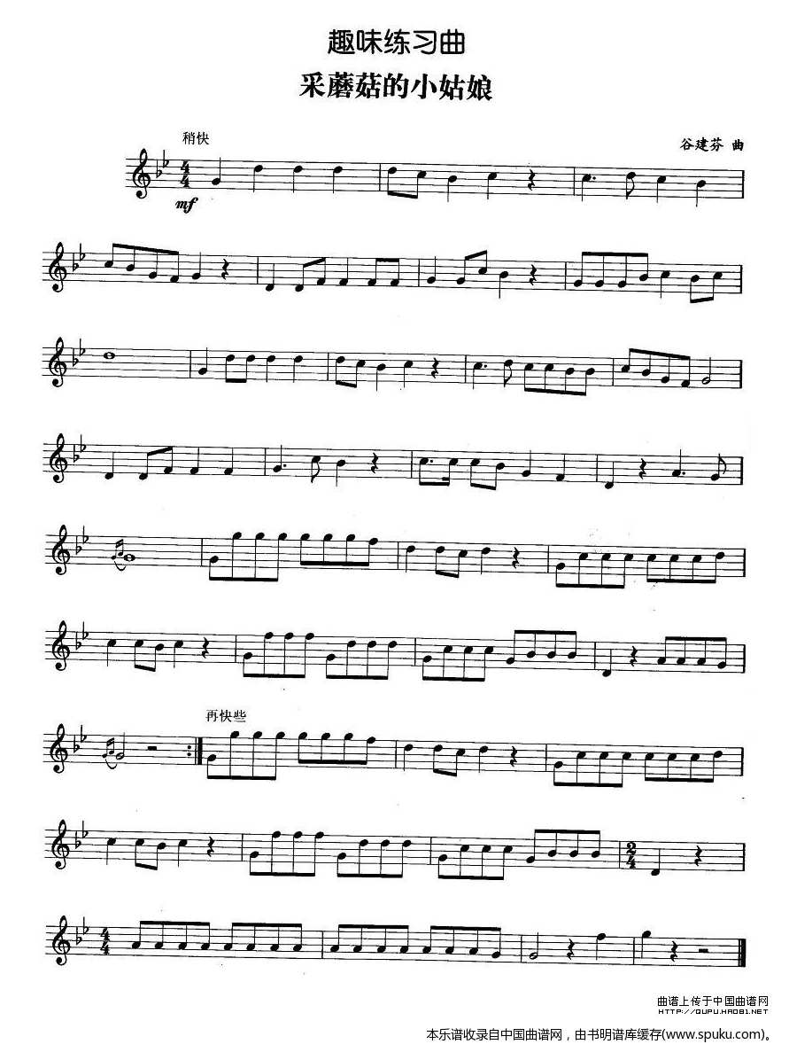 > 趣味练习曲 采蘑菇的小姑娘 铜管