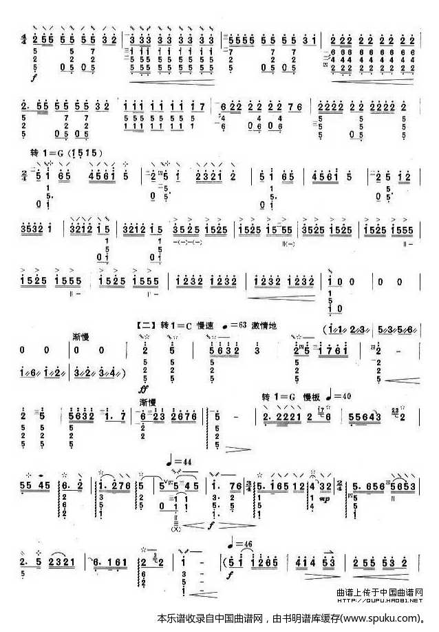 柳琴考级曲目一级 萨丽哈之歌 乐器谱