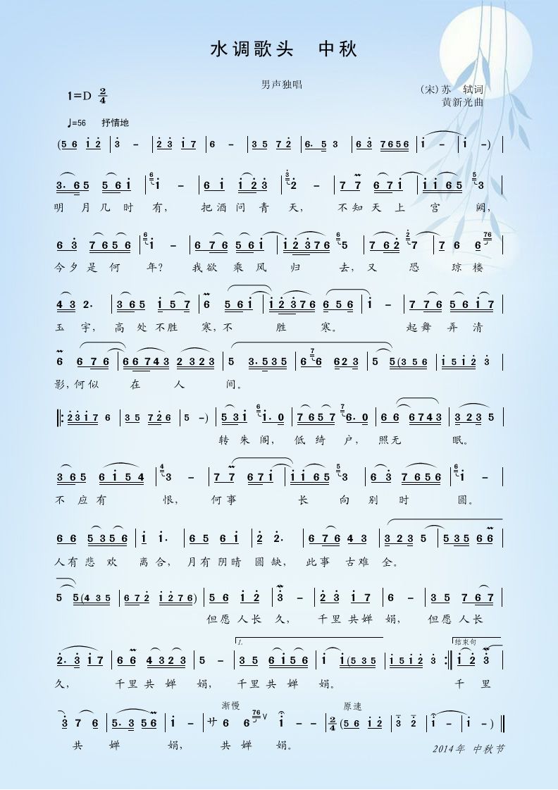 - [歌谱] 水调歌头 中秋