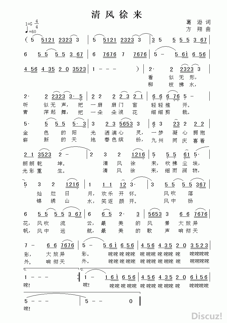 - [歌谱] 清风徐来