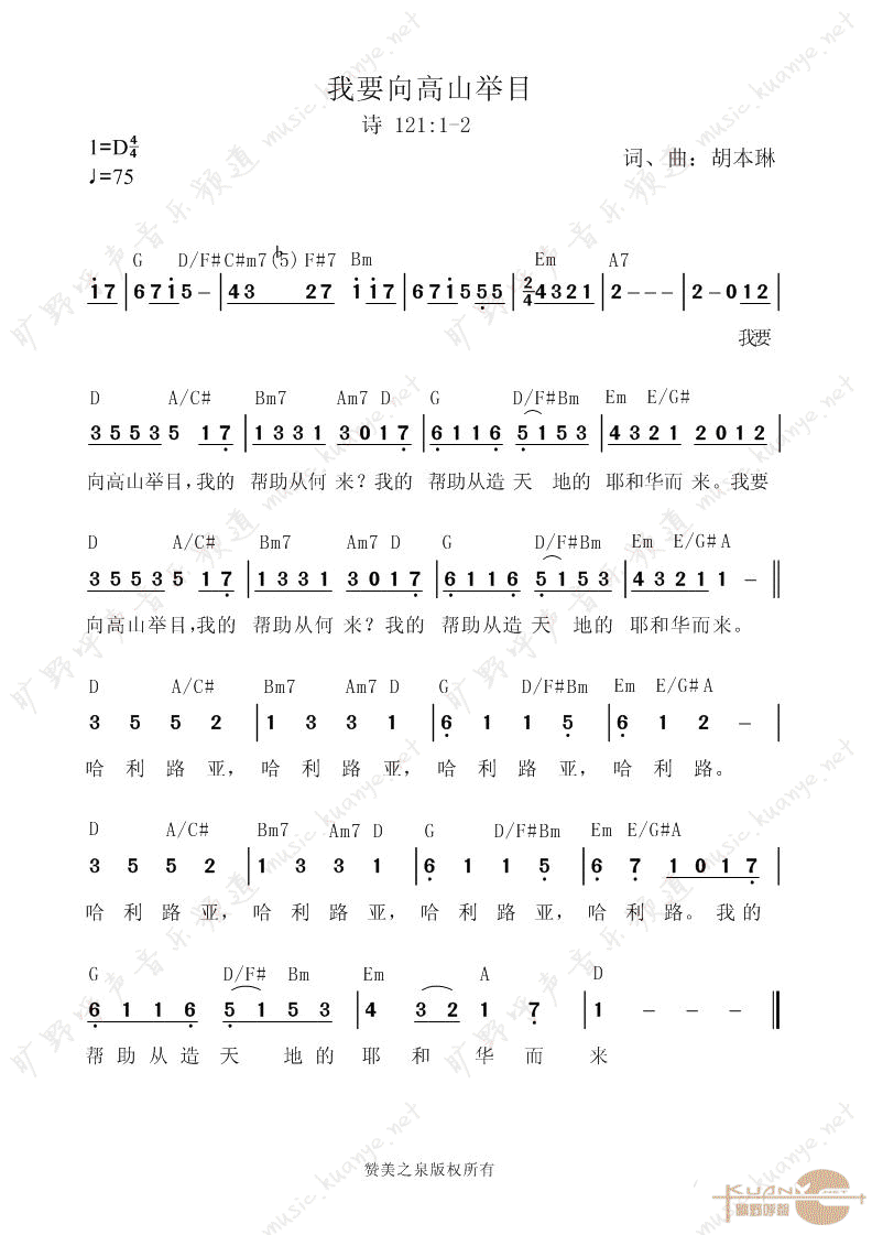 我向高山举目 弹唱版