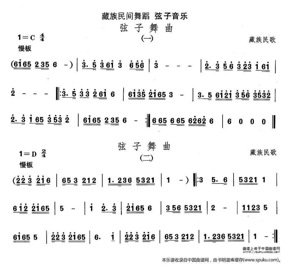 中国民族民间舞曲选 七 藏族舞蹈 弦子 弦子舞 乐器谱