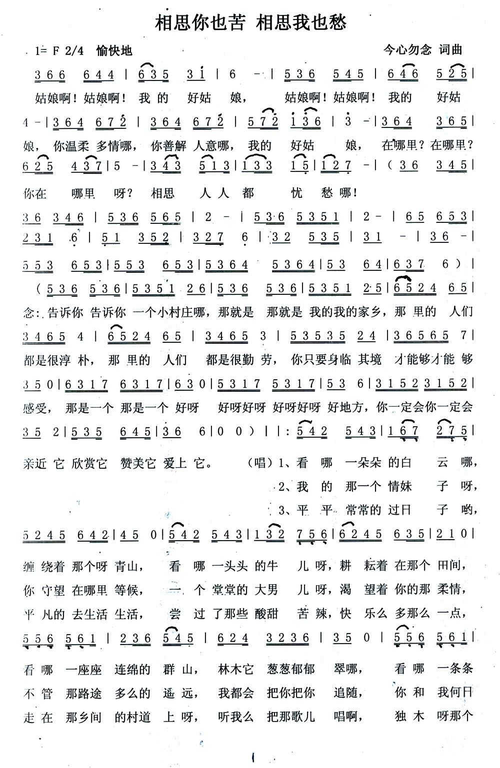 - [歌谱] 相思苦