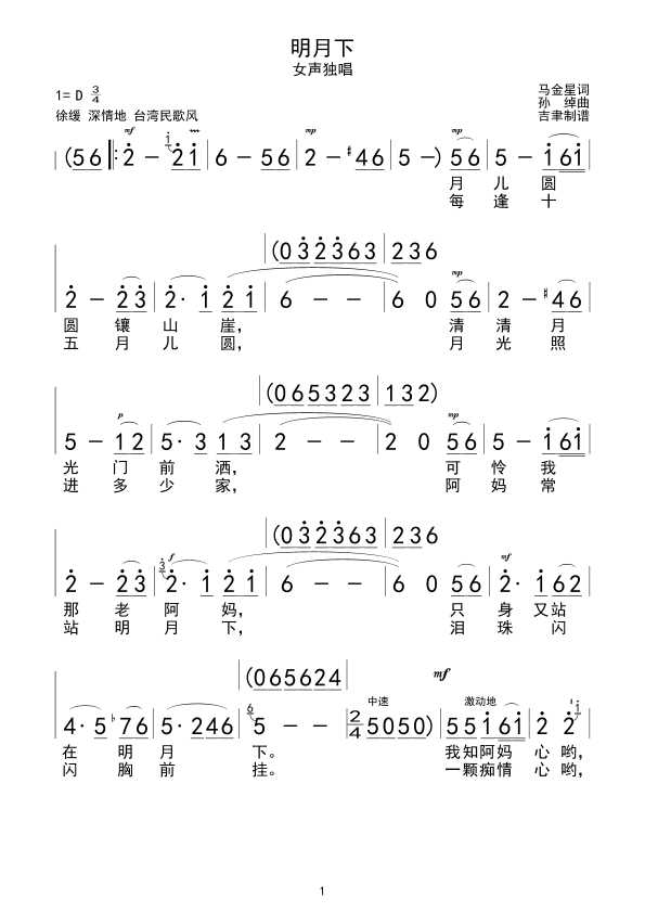 - [歌谱] 明月下