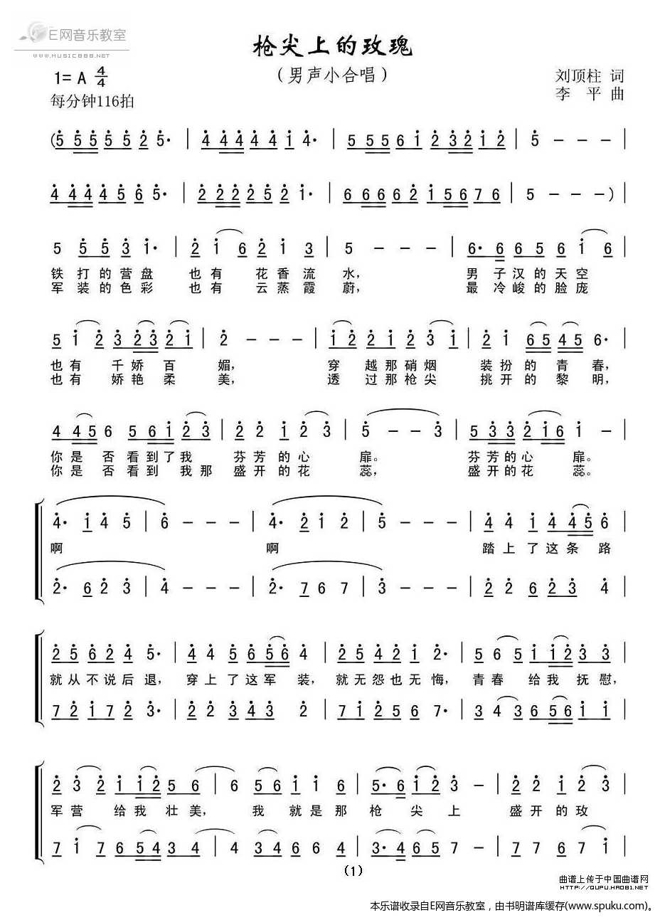 枪尖上的玫瑰 刘顶柱 男声小合唱