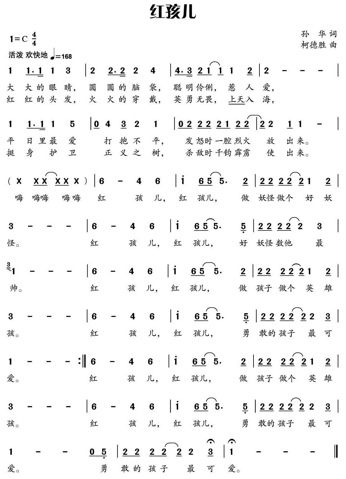 - [歌谱] 红孩儿故事李子恒作词作曲