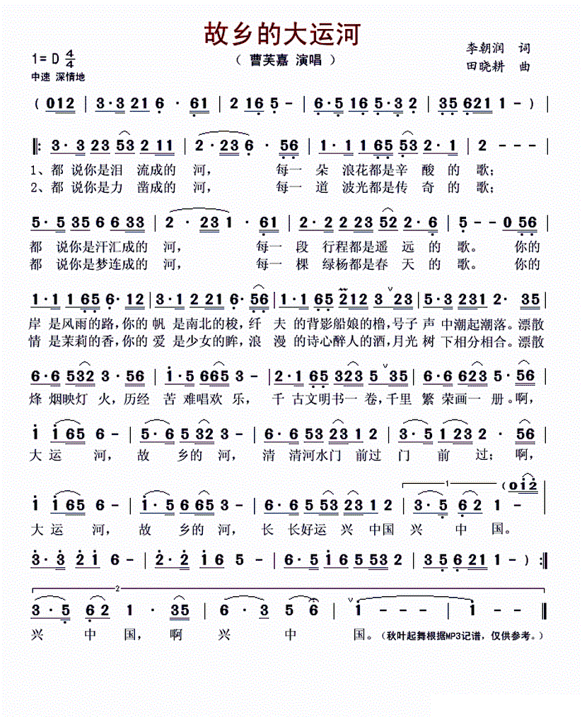 - [歌谱] 大运河 奔腾的歌 阎维文
