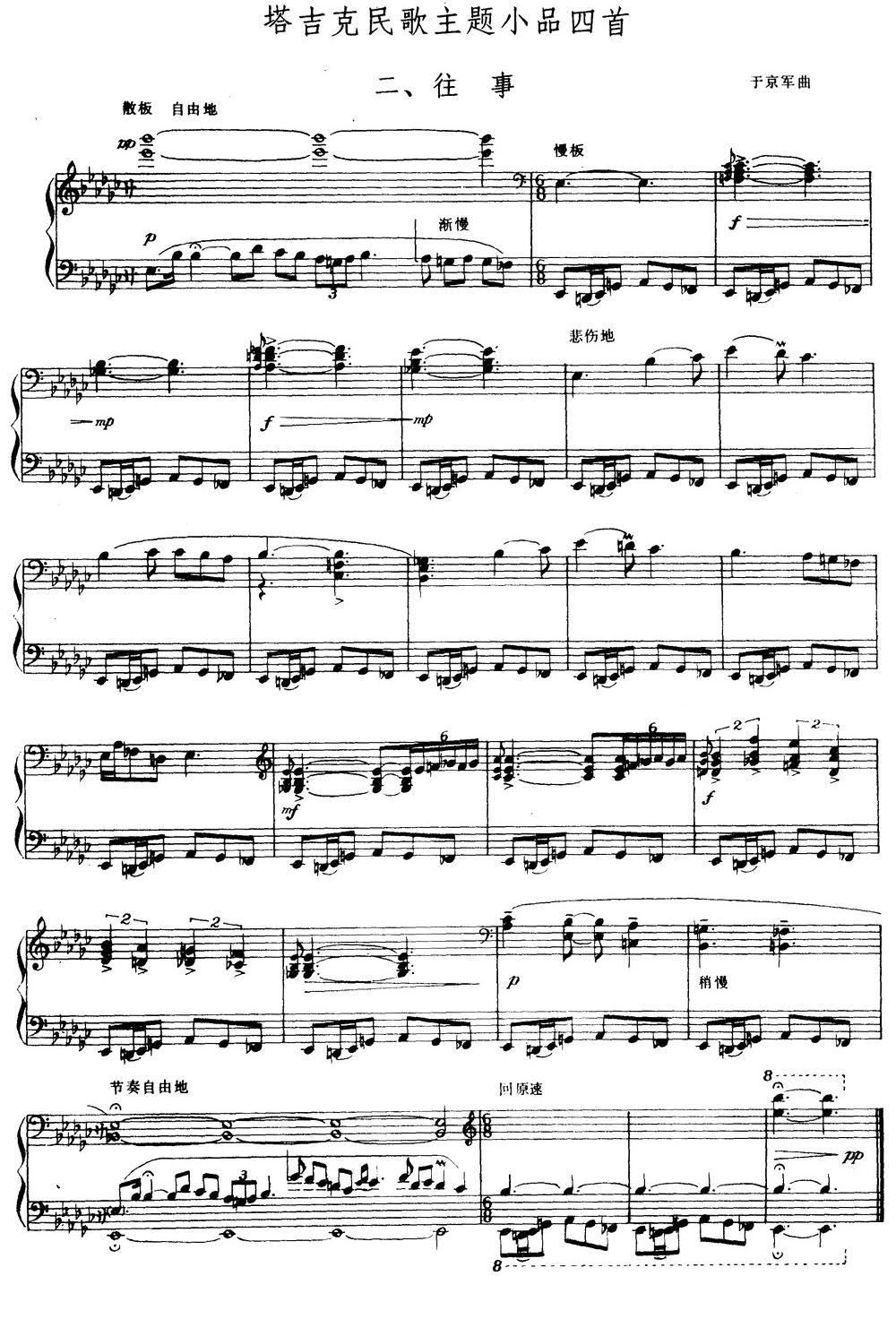 塔吉克民歌主题小品四首 二 往事
