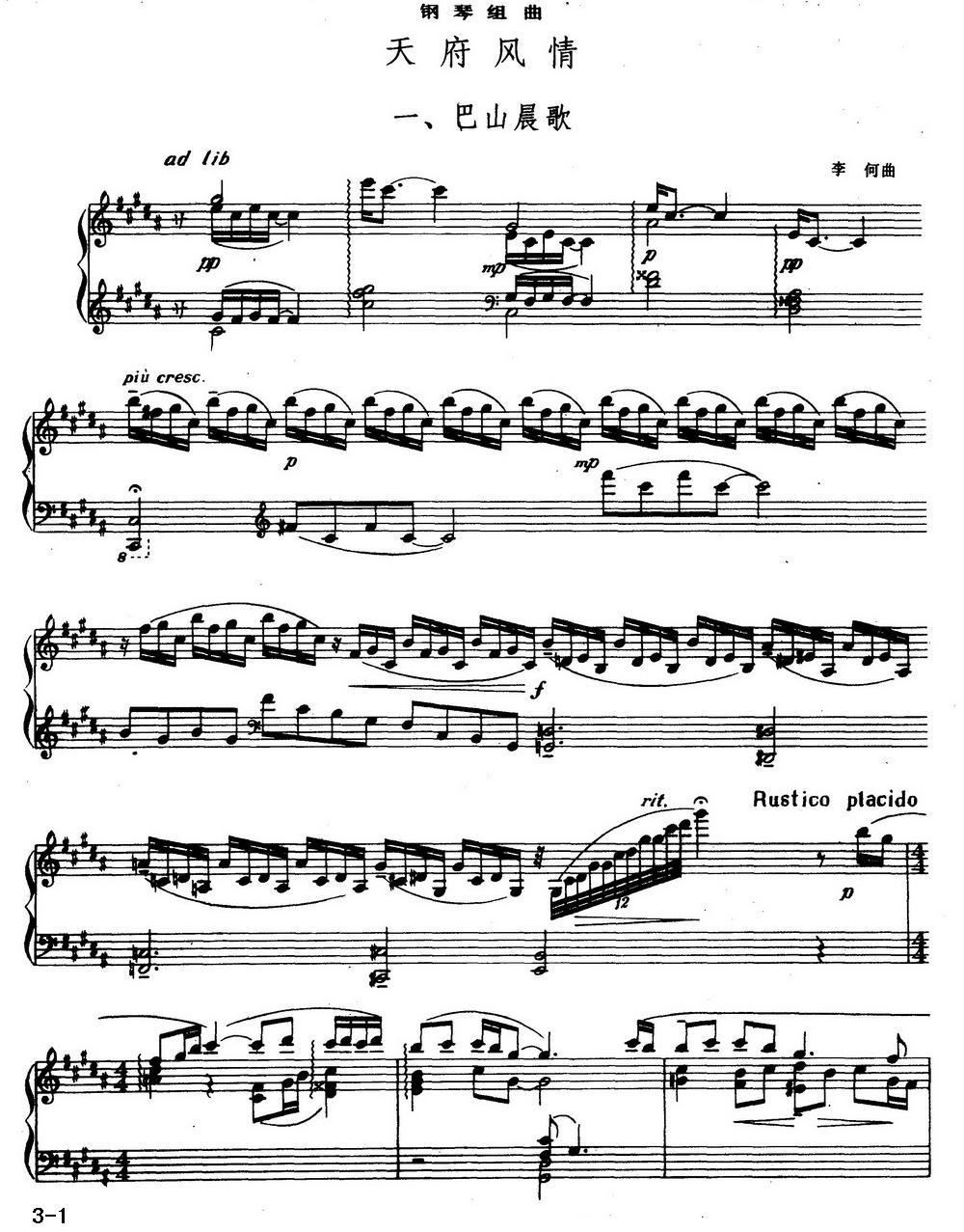 - [钢琴谱] 天府风情 钢琴组曲之一 二