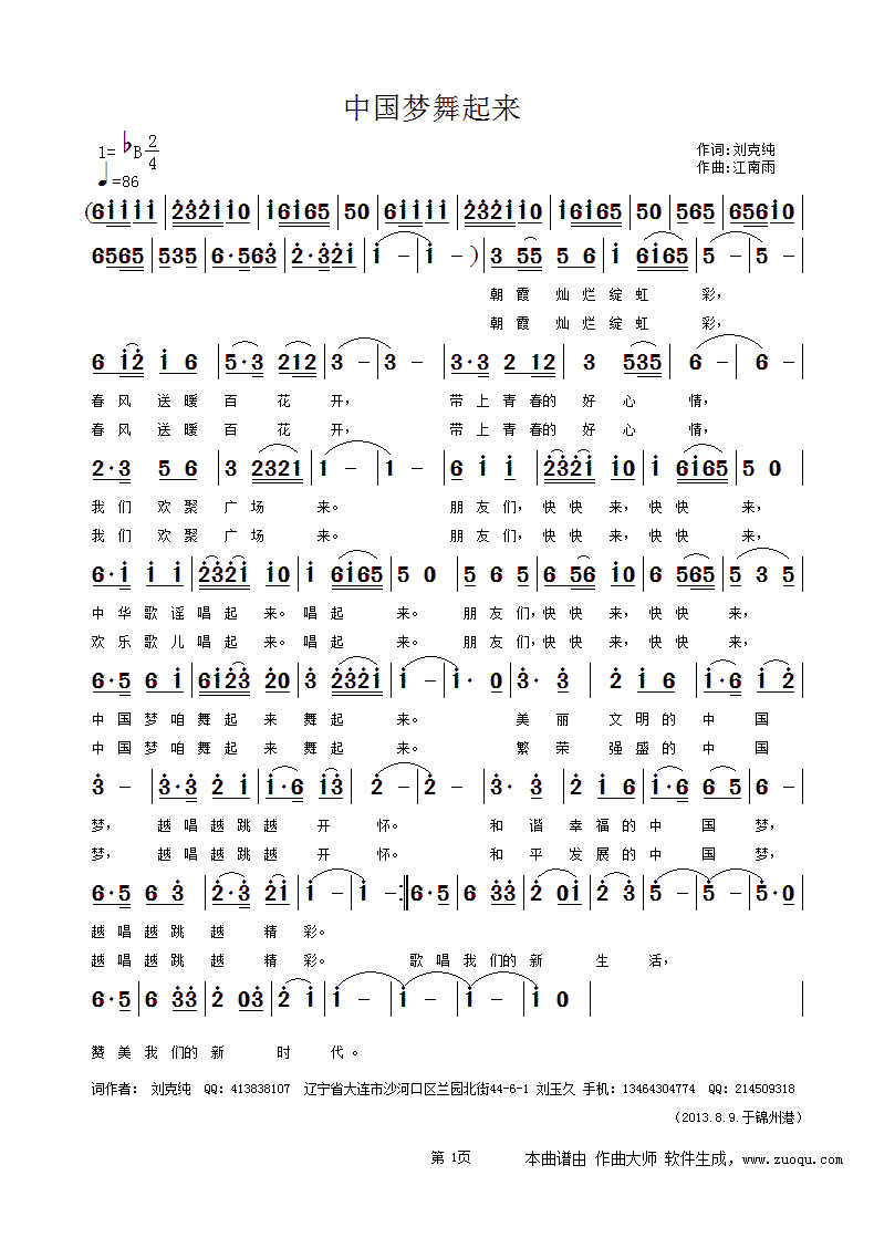 - [歌谱] 中国梦舞起来