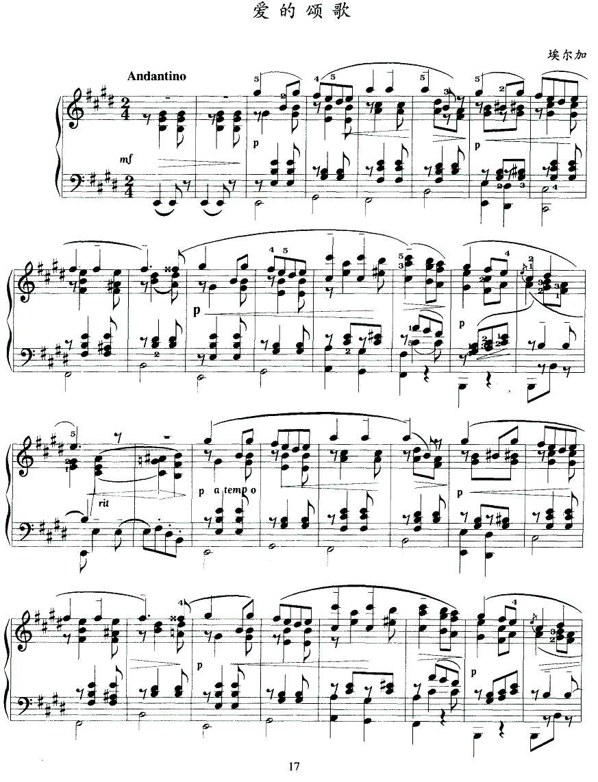 - [钢琴谱] 爱之颂 埃尔加
