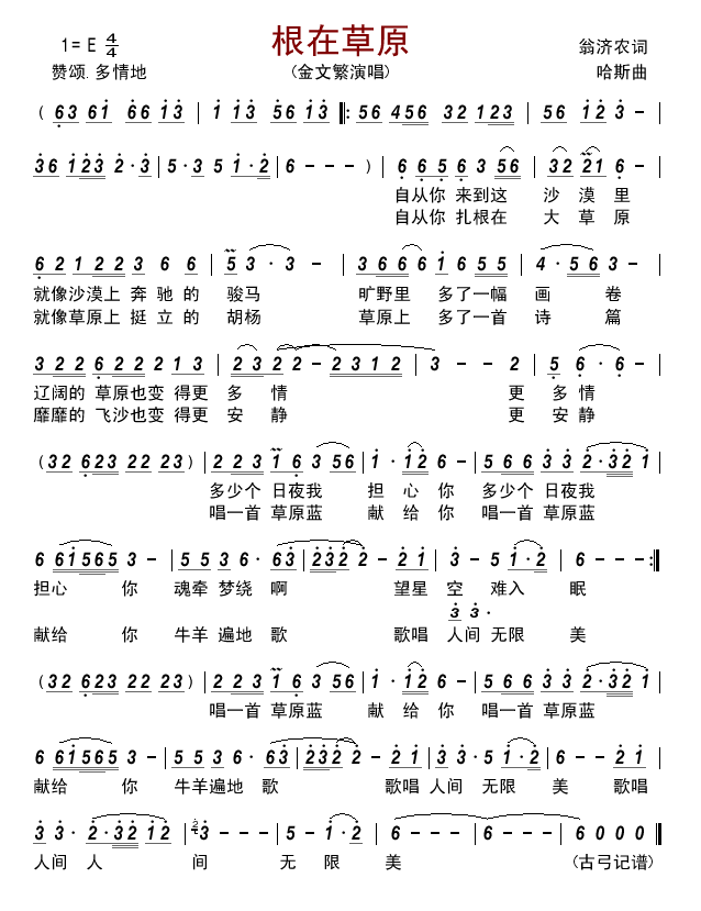- [歌谱] 草原根