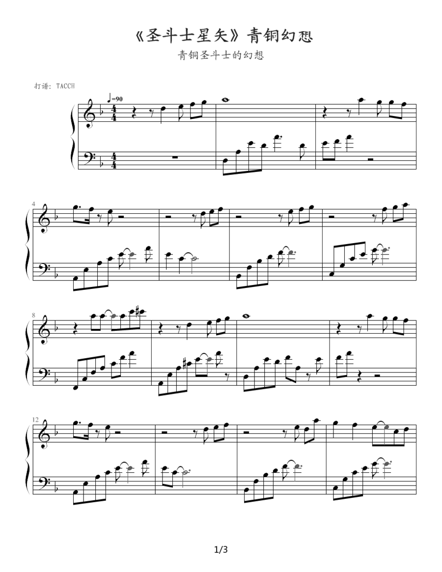 - [钢琴谱] 圣斗士星矢 1 9 青铜幻想