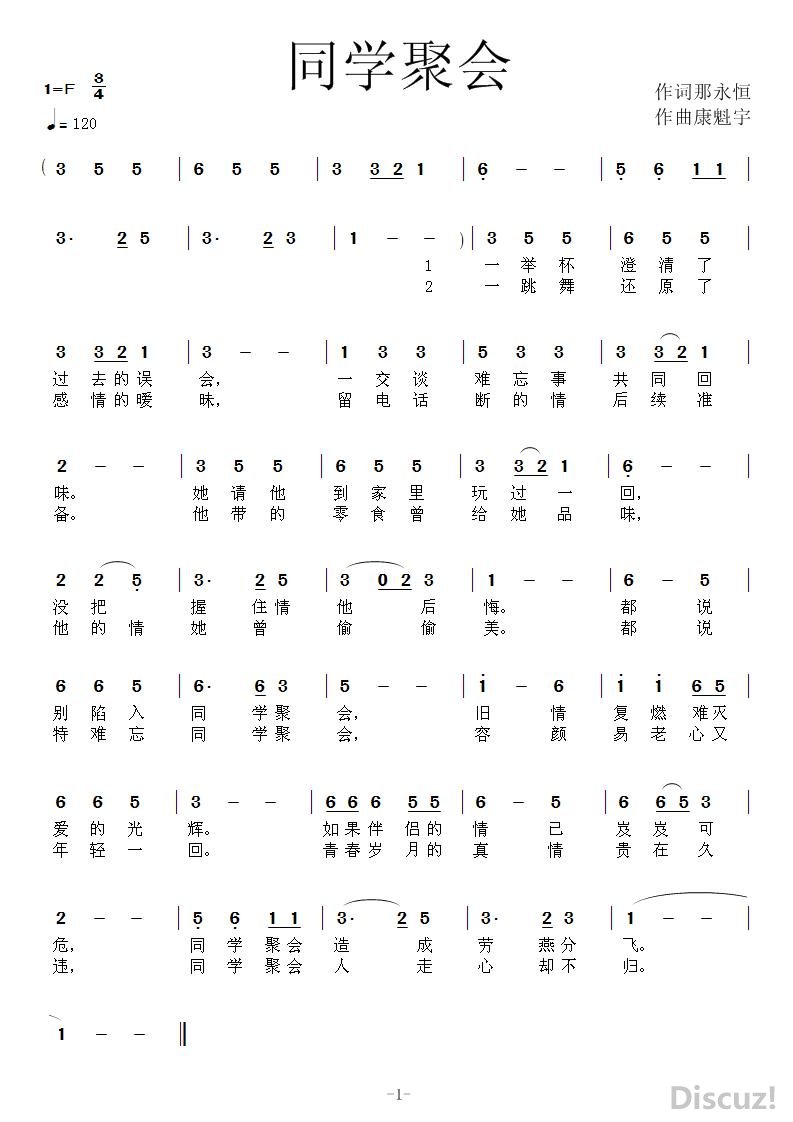 - [歌谱] 我们一齐举杯 同学聚会歌