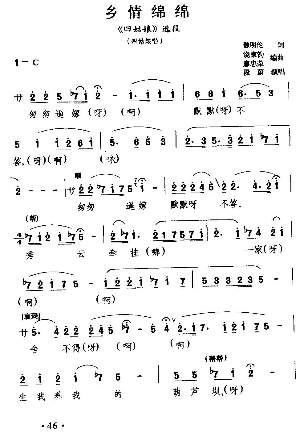> 川剧 乡情绵绵 四姑娘 四姑娘唱段