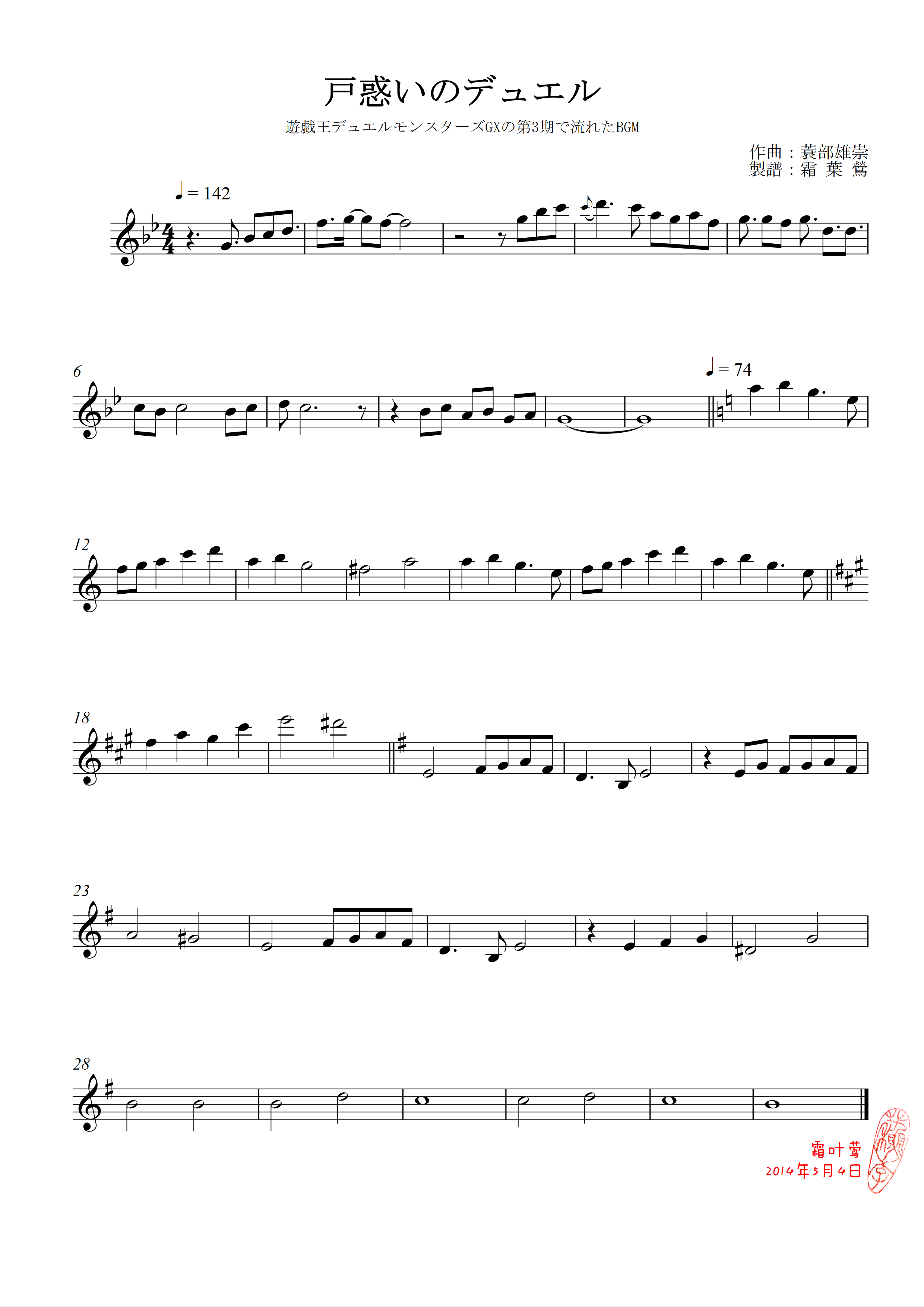 简谱网 > 歌谱 > 戸惑いのデュエル