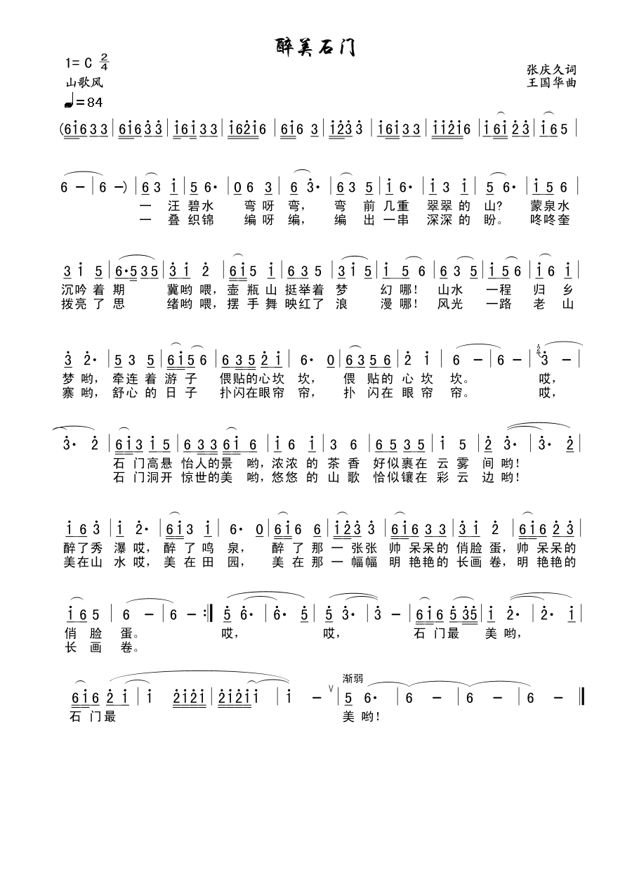 - [歌谱] 醉美石门