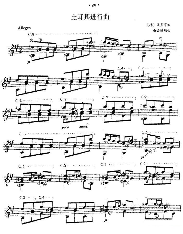 > 土耳其进行曲 西班牙吉他古典式独奏