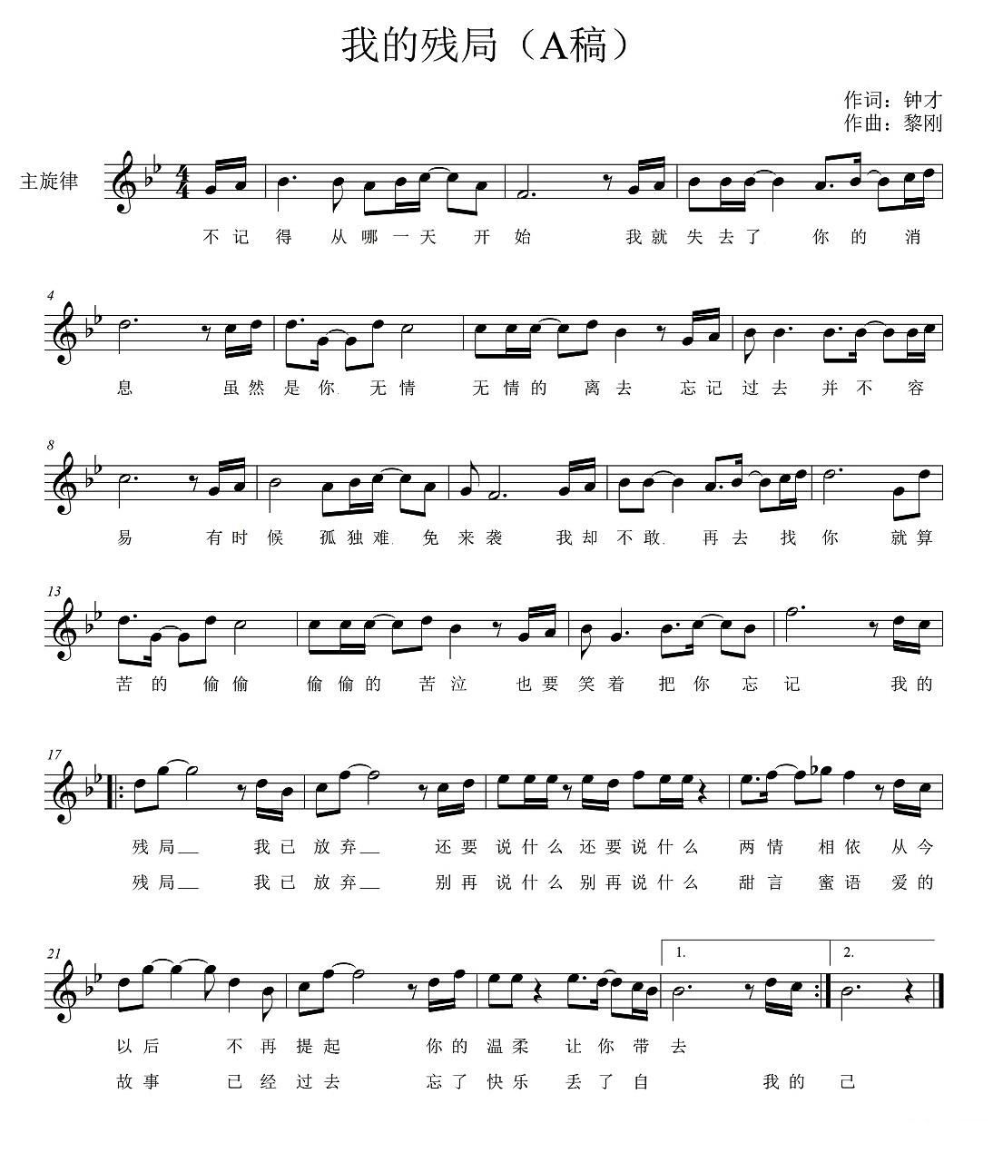 - [歌谱] 我的残局