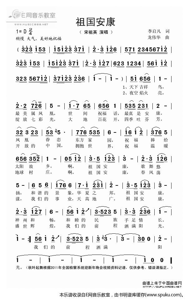 - [歌谱] 祖国安康