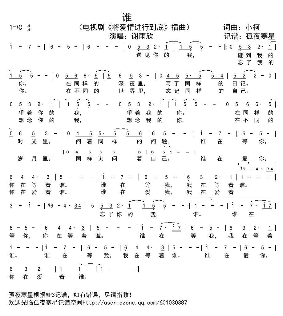 谁 电视剧 将爱情进行到底 片尾曲 谢雨欣