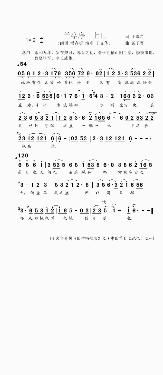 - [歌谱] 兰亭序 于文华国学歌集主打歌 彩谱
