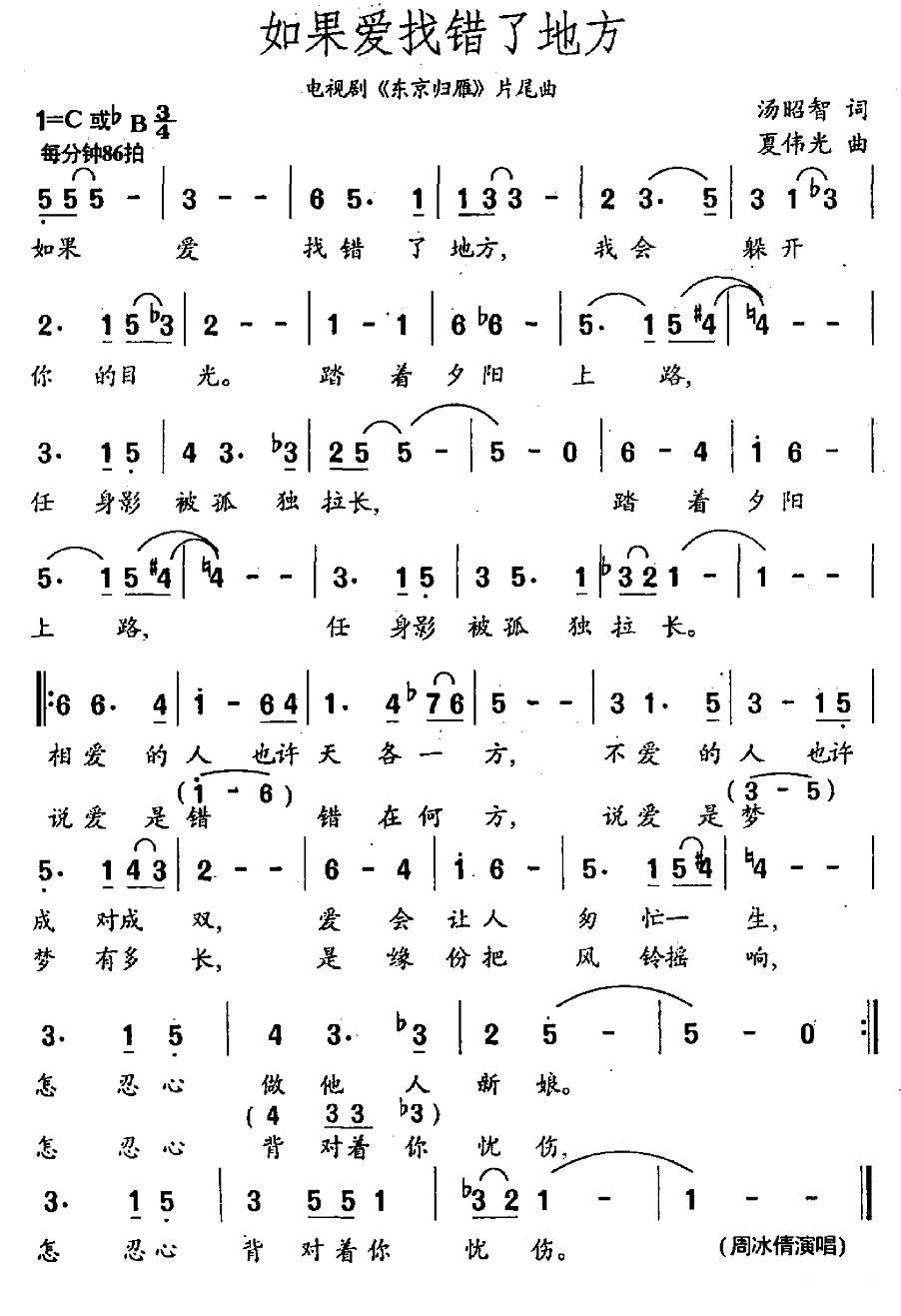 > 如果爱找错了地方 电视剧 东京归雁 片尾歌